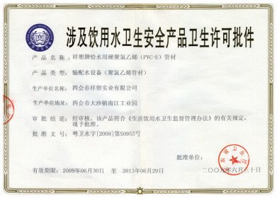 涉及飲用水衛生安全產(chǎn)品衛生許可批件